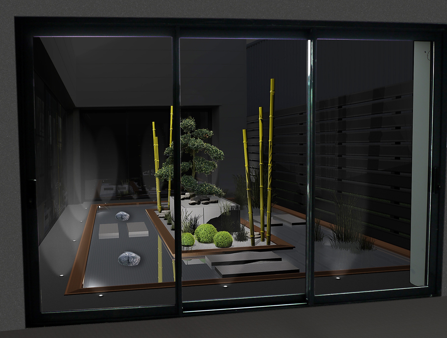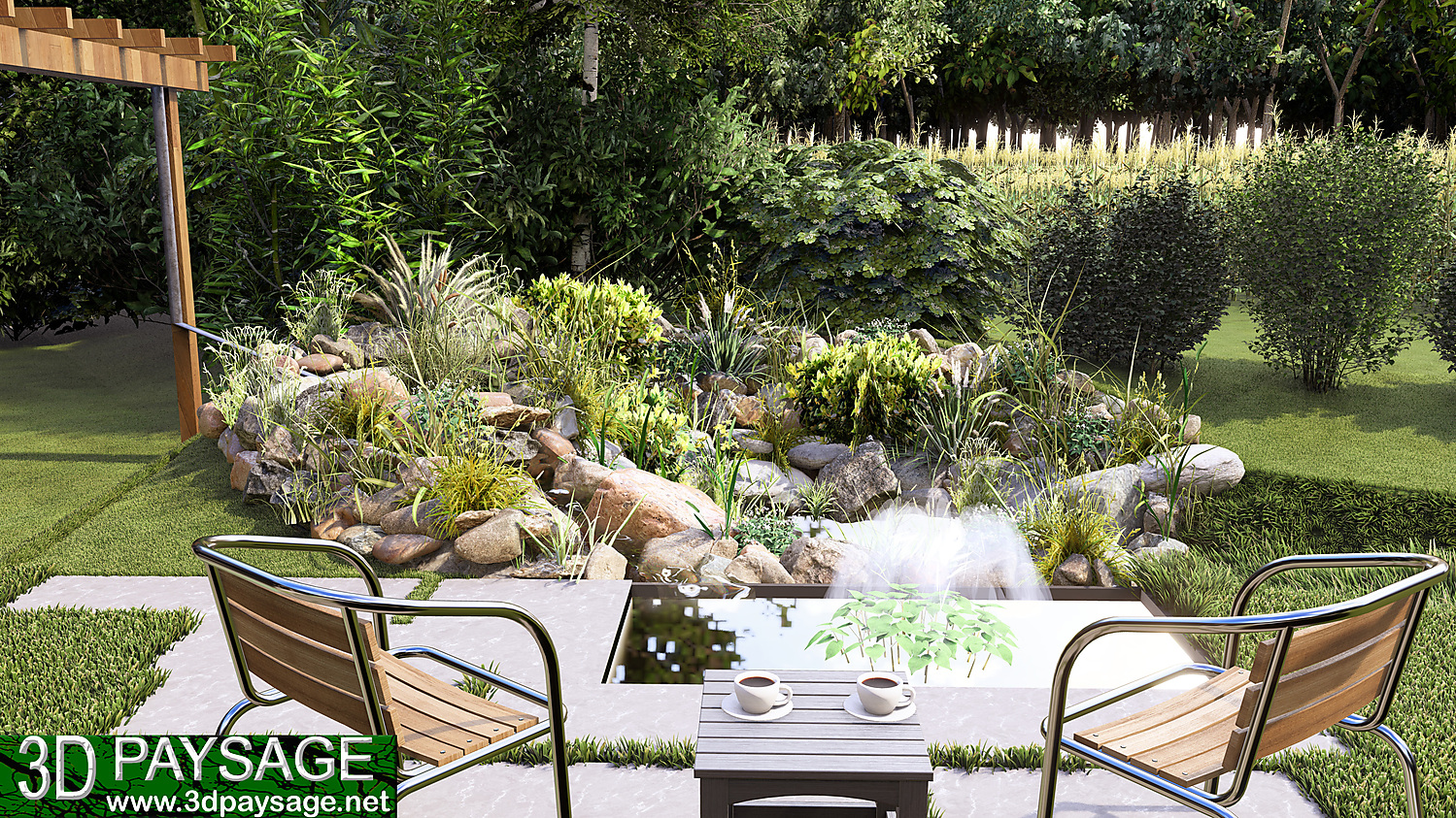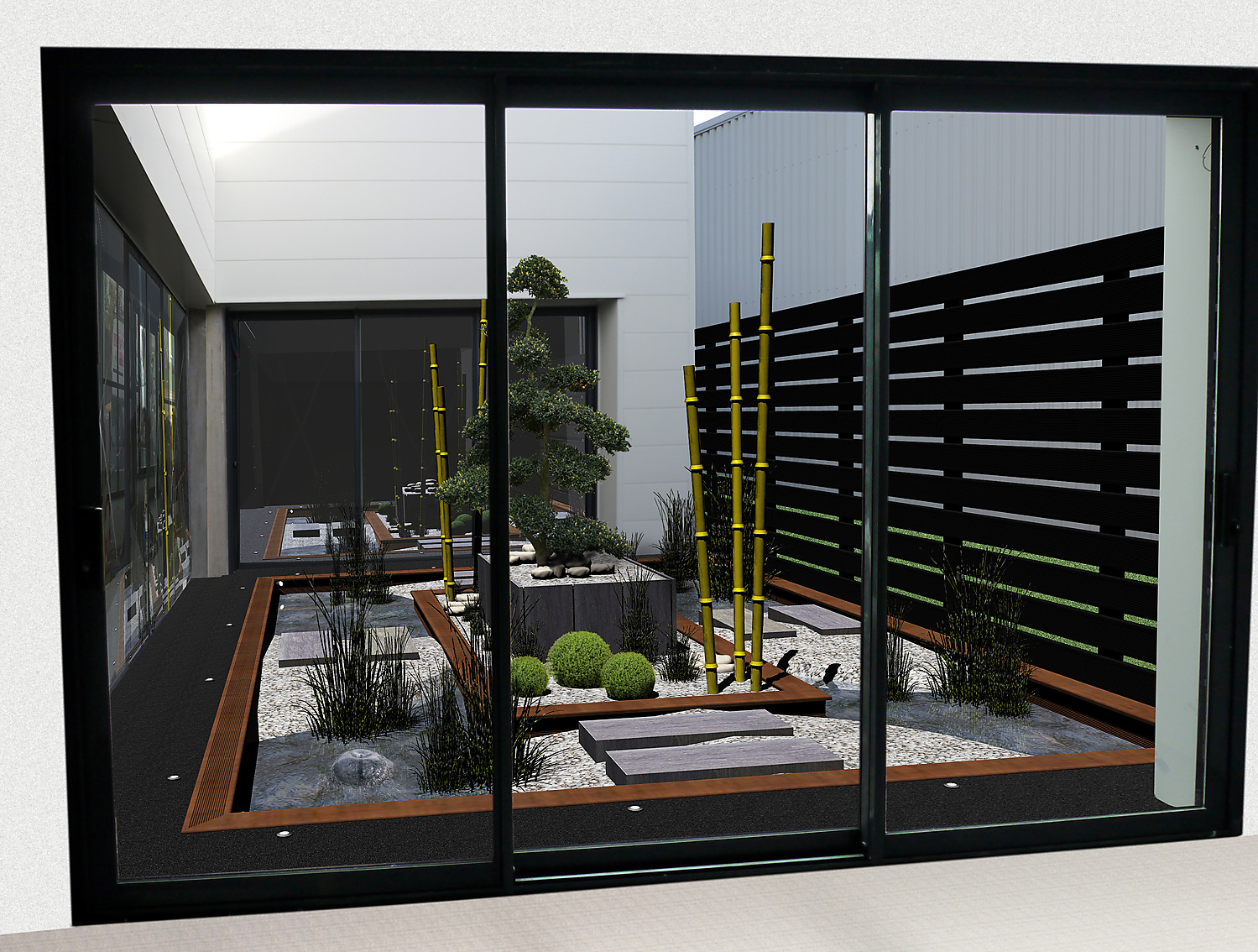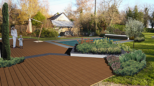 Les bâtiments existants et le jardin projeté sont modélisés en 3 dimensions de manière réaliste. Cette maquette 3D est présentée en réalité virtuelle, en vidéo ou par des images de synthèses photoréalistes pour s’approprier le projet le plus fidèlement possible.